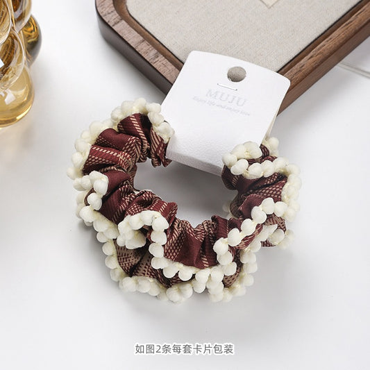 D廠【B492】時尚格紋大腸圈髮繩2條卡裝高級感布藝頭繩髮飾寬皮筋高馬尾髮圈 25.11-1「D廠-單筆結帳需滿,NT$600出貨(不含運費)」