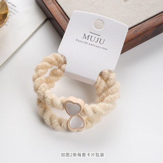 D廠【B495】韓式鑲鑽毛絨髮繩2條卡裝皮筋高彈性加粗頭繩條碼髮飾加粗髮圈 25.11-1「D廠-單筆結帳需滿,NT$600出貨(不含運費)」