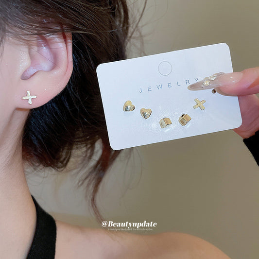 A廠【HE29309】925銀針愛心方形耳環套裝精緻簡約日常通勤百搭耳環輕奢高級感耳飾女 25.11-2