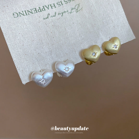 A廠【HE29325】鋯石鋯石拉絲愛心耳扣休閒時尚通勤日常百搭耳環輕奢氣質小眾耳環 25.11-2