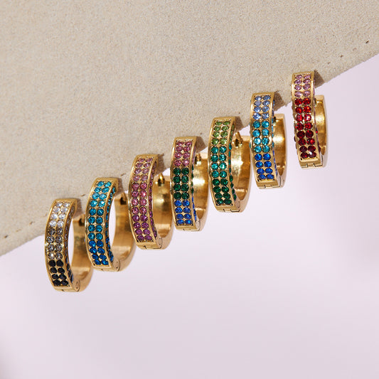 B廠【F930】ins風高品質彩色5A鋯石圓圈卡扣耳環不鏽鋼鍍18k真金耳飾女 25.11-2