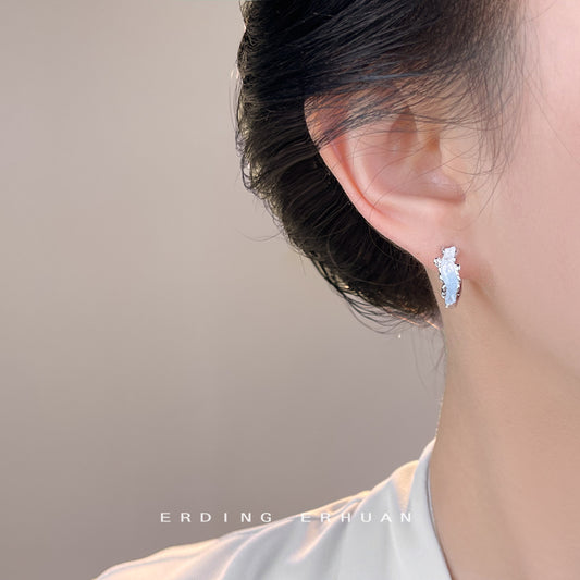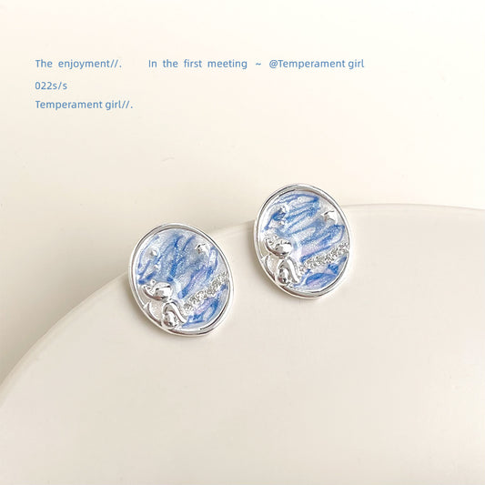 A廠【6191】【海域星空】~設計師款琺瑯滴釉925銀針微鑲鋯石新款耳飾耳環 25.11-3
