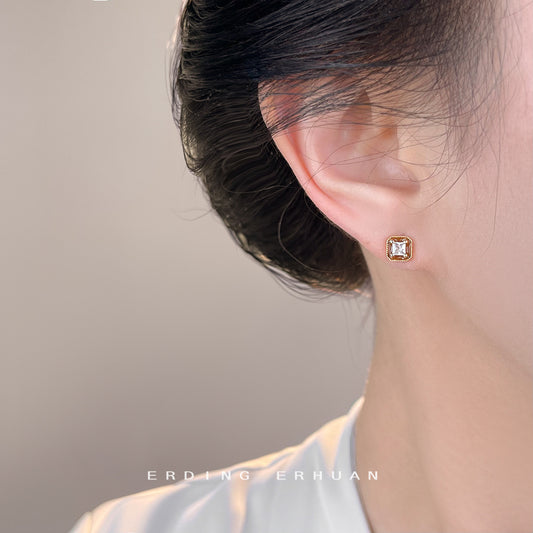 A廠【7112】迷你版~鋯石幾何方形925銀針小耳環日常通勤睡覺不用摘耳飾女 25.11-3