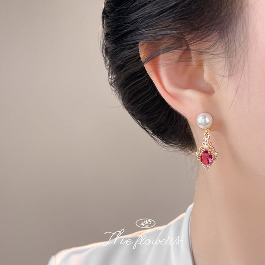 A廠【7134】冬天款文藝復古酒紅植絨溫暖新款銀針蝴蝶結珍珠耳環氣質耳飾 25.11-3