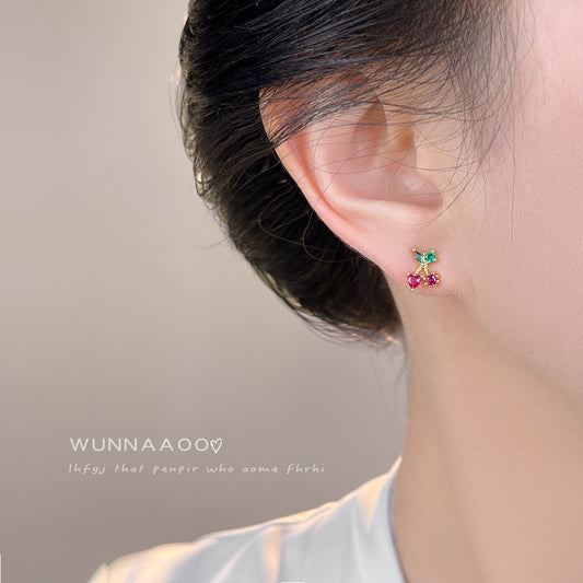 A廠【7111】迷你可愛清新甜美微鑲鋯石小櫻桃耳環925銀針新款跨境 耳飾女 25.11-3