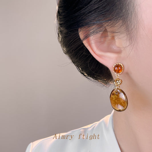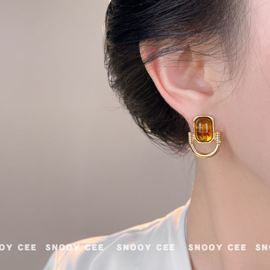 A廠【7104】時尚高級感美拉德風暈染琥珀色秋冬新款爆款幾何手工耳飾耳環 25.11-3