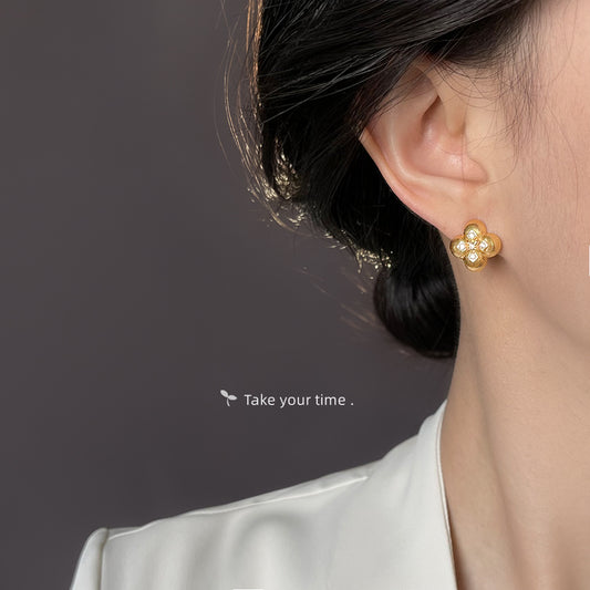 A廠【6545】時尚高級感微鑲鋯石925銀針電鍍14K四葉花新款耳環女飾品 25.11-3