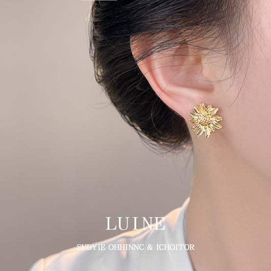 A廠【7100】簡約時尚高級感雛菊花朵中古風耳環女氣質新款文藝復古向日葵耳飾 25.11-3