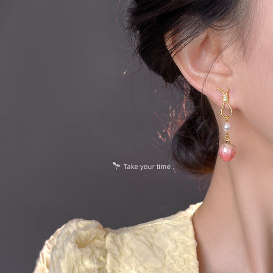 A廠【5809】「蜜桃草莓」清新甜美粉紅小草莓耳環女時尚氣質優雅耳環 25.11-4