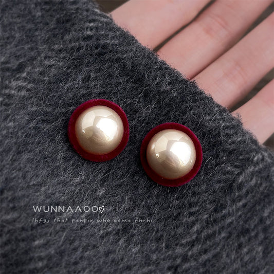 A廠【7139】秋冬爆款植絨高級感圓形幾何珍珠文藝復古新款耳飾港風耳環飾品女 25.11-4