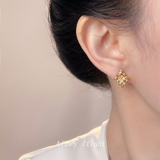 A廠【7163】鳶尾花系列原創設計鑲嵌鋯石個性輕奢風新款高級感耳飾耳環女 25.11-4