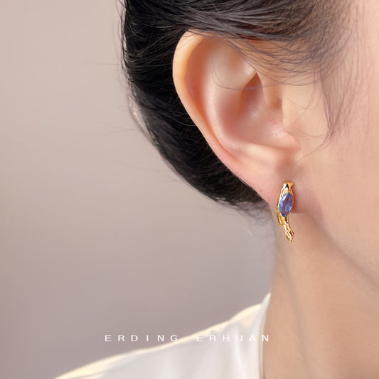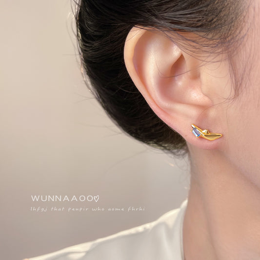 A廠【7159】原創漂流船~鑲嵌海藍寶鋯石925銀針個性創意設計新款耳環 25.11-4