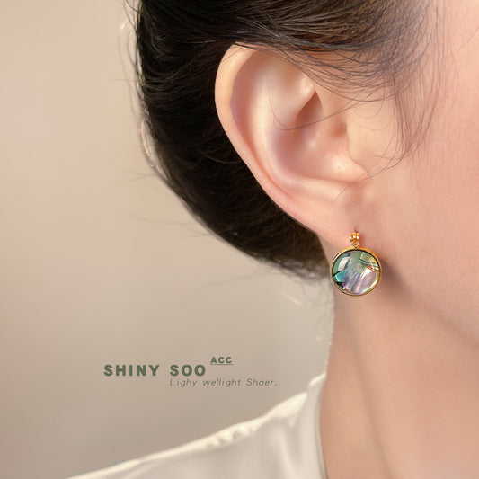 A廠【7101】鮑魚貝!時尚高級感輕奢風中古圓形幾何雙面耳飾貝殼耳環飾品 25.11-4
