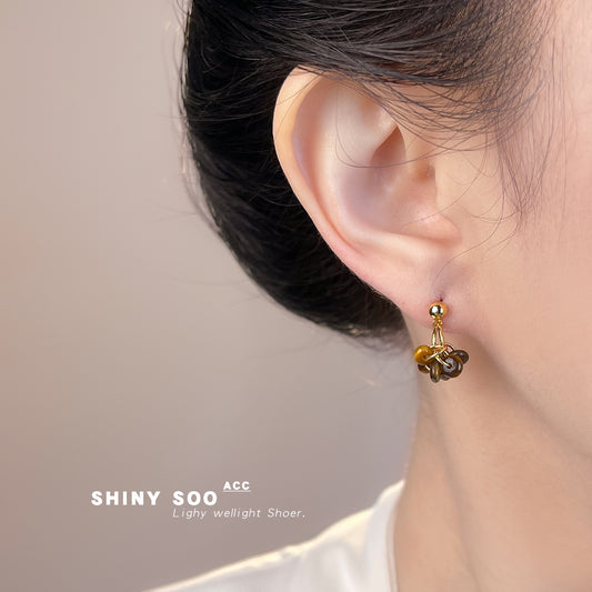 A廠【6881】文藝復古美拉德風天然石虎眼石手工藝設計感小流蘇耳環飾品 25.11-4