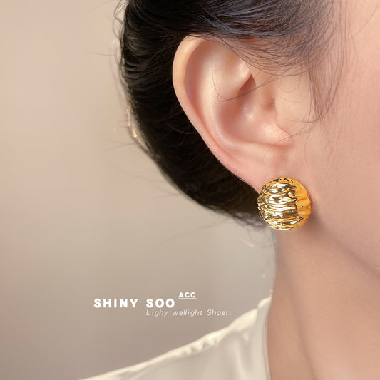 A廠【7141】小眾設計感核桃紋路時尚高級感銀針圓形幾何重工感耳飾耳環女 25.11-4