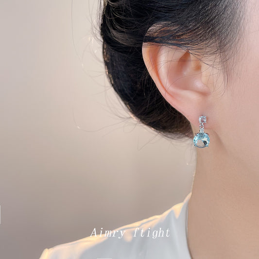 A廠【7053】海藍色時尚高級感清新甜美鋯石耳環幾何簡約通勤飾品耳飾 25.11-4