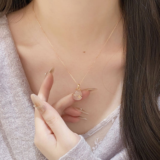 E廠【XDQ1020N】S925純銀日韓甜美櫻花粉水晶項鍊女小眾高級感粉紅色花朵鎖骨鏈 25.11-4