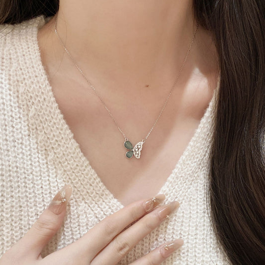 E廠【XDQ0843N】高級感小眾藍水翡翠蝴蝶項鍊女S925純銀輕奢閃鋯鎖骨鏈潮 25.11-4