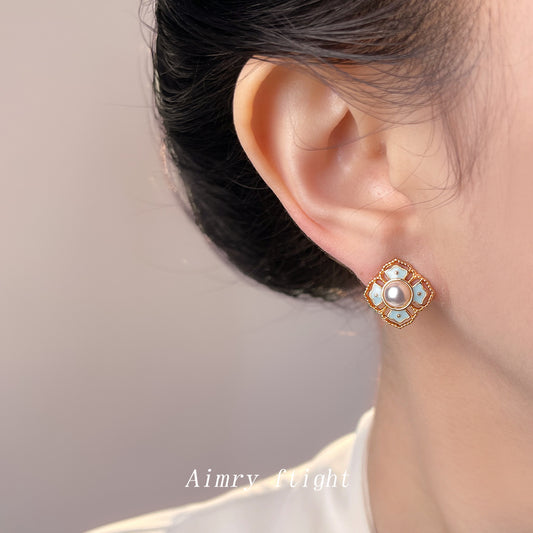 A廠【7151】原創國潮新中式紋樣 925銀針琺瑯滴釉復古花紋宮廷耳環耳飾女 25.12-1