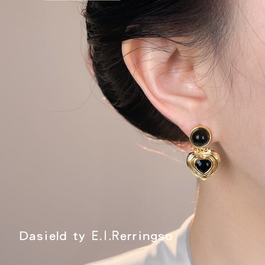 A廠【7187】秋冬爆款美拉德風文藝復古天然石虎眼石中古耳飾愛心幾何耳環 25.12-1