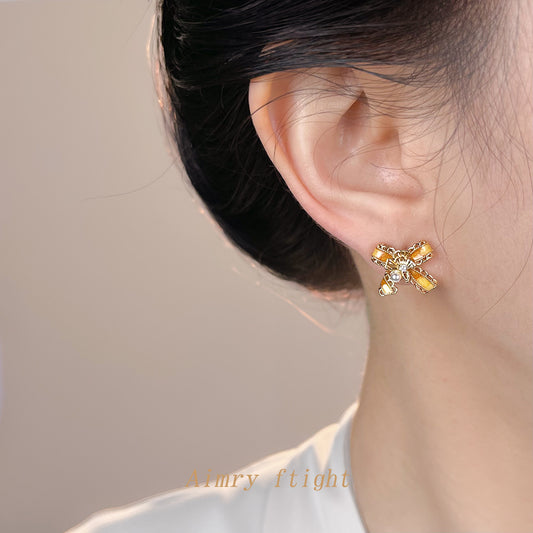 A廠【7192】原創蝴蝶結銀杏葉手工彩繪925銀針鍍14K漸變色耳飾耳環飾品女 25.12-1