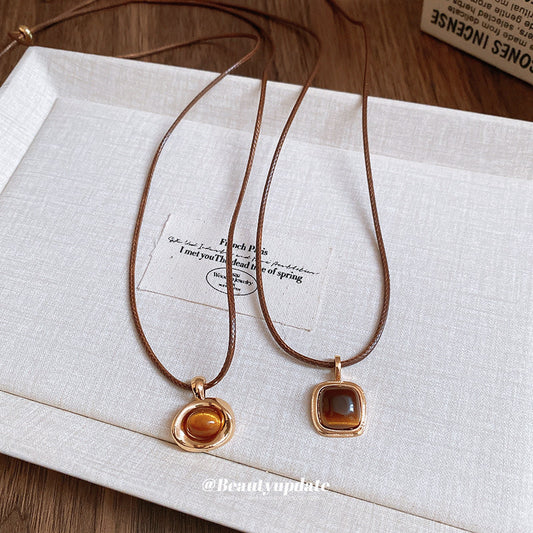 A廠【HN7794】跨境皮繩幾何樹脂可調式項鍊女秋冬復古時尚毛衣鏈輕奢高級感飾品 24.11-3