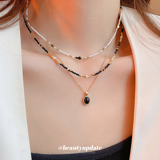 A廠【HN7102】虎眼石水晶珍珠串珠疊帶項鍊復古小眾氣質鎖骨鏈輕奢高級感配件女 24.07-4