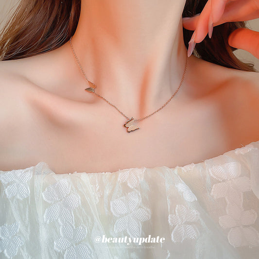 A廠【HN7047】鈦鋼歐美立體蝴蝶手鐲項鍊耳環組時尚百搭氣質手鍊簡約小眾飾品 24.07-4