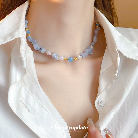A廠【HN6760】法式高級感海藍寶淡水珍珠項鍊手鏈套裝輕奢百搭鎖骨鏈 24.06-4