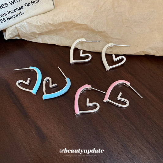 A廠【HE25815】925銀針滴油愛心耳環簡約清新甜美時尚耳環高級感氣質耳飾設計感小眾 25.04-3