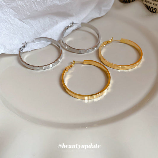 A廠【HE25900】18k真金電鍍925銀針條紋耳環女跨國簡約冷淡風素圈耳圈時尚氣質耳環 25.04-3