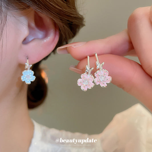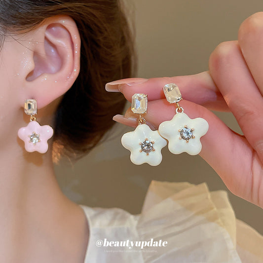 A廠【HE25606】925銀針鑲鑽滴油花朵耳環女簡約時尚耳環輕奢高級感通勤百搭耳環 25.04-3