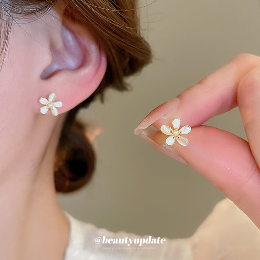 A廠【HE25793】925銀針鋯石滴油花朵耳環小巧清新百搭耳環輕奢高級感通勤氣質耳環女 25.04-3