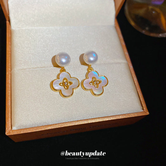 A廠【HE25840】18K真金電鍍銀針珍珠母貝花朵耳環女法式時尚設計耳環輕奢耳飾女 25.04-3