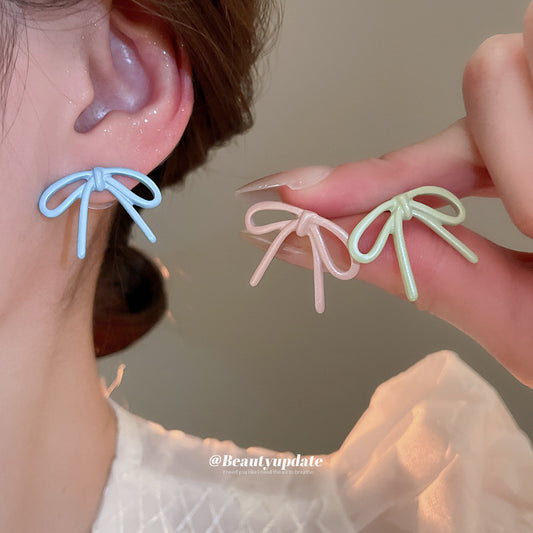 A廠【HE25869】925銀針噴漆霧面蝴蝶結耳環極簡風個性設計耳環時尚通勤百搭耳飾小眾 25.04-3