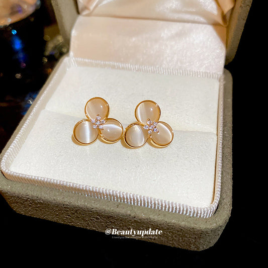 A廠【HE25988】18k真金電鍍925銀針鋯石花朵貓眼石耳環個性氣質耳環輕奢高級感耳飾 25.04-3