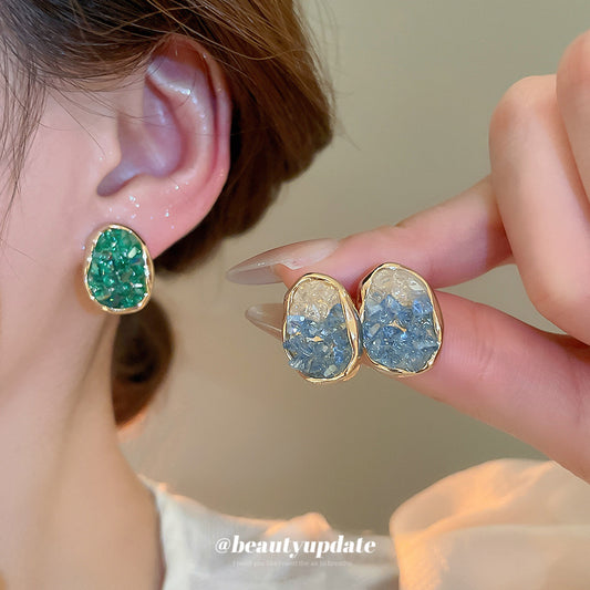 A廠【HE25949】925銀針祖母綠橢圓形水晶耳環女復古甜美精緻耳環輕奢高級感耳飾 25.04-3