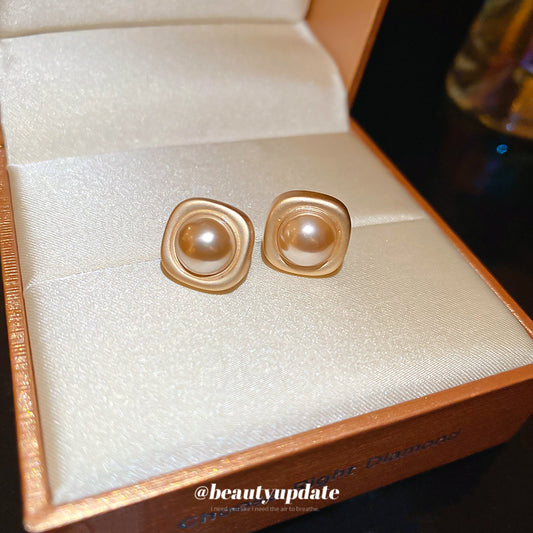 A廠【HE25930】925銀針方形珍珠耳環簡約法式復古耳環輕奢高級感時尚氣質百搭耳環女 25.04-3
