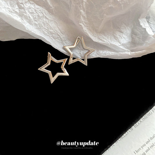 A廠【HE25832】光面幾何銀色五角星耳扣極簡風小巧設計耳環輕奢高級感時尚耳環女 25.04-3