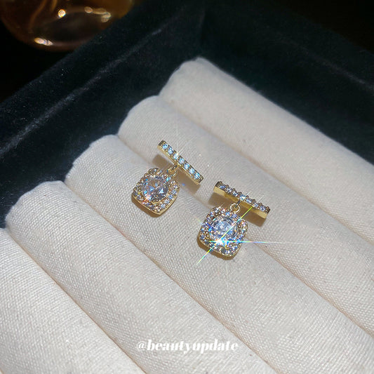 A廠【HE25825】18k真金電鍍925銀針鋯石方形耳環輕奢高級感耳環女精緻時尚百搭耳飾 25.04-3