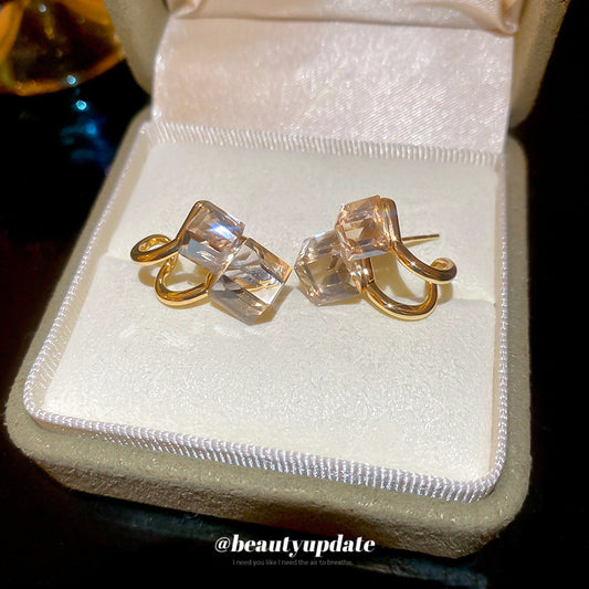 A廠【HE25934】925銀針雙層玻璃方形耳環輕奢高級感耳環氣質時尚百搭耳環設計感小眾 25.04-3