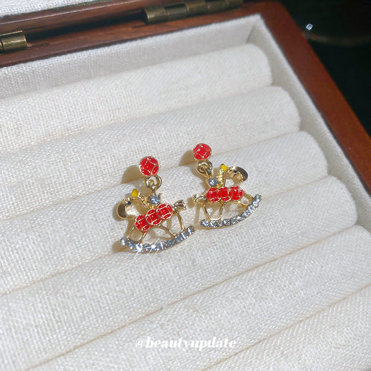 A廠【HE28860】925銀針輕奢鑲鑽滴油小馬吊墜耳環卡通創意個性耳環小眾設計感耳飾女 25.10-2