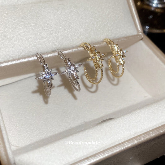 A廠【HE28853】925銀針超閃鋯石芒星C形耳環歐美時尚簡約百搭耳環輕奢高級感耳飾女 25.10-2