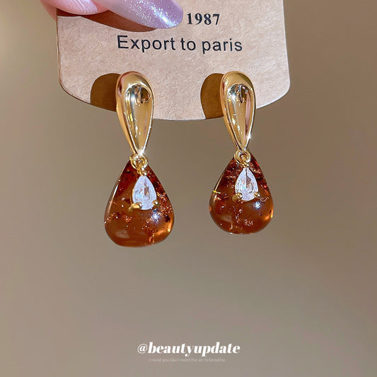 A廠【HE28840】18K真金電鍍925銀針樹脂水滴吊墜耳環復古港風耳環小眾設計感耳飾女 25.10-1