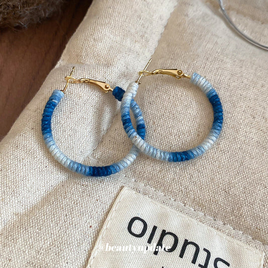 A廠【HE28813】925銀針棉線纏繞幾何圓形吊墜耳環耳圈簡約小清新耳環小眾設計感耳飾 25.10-1