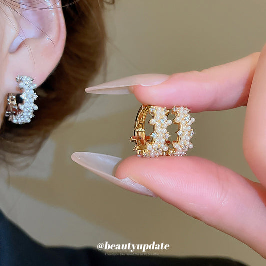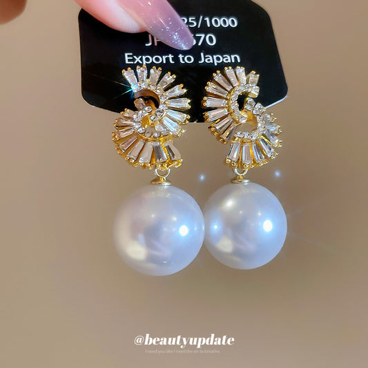 A廠【HE28861】925銀針超閃鑲鑽圓形珍珠吊墜耳環法式優雅氣質耳環輕奢高級感耳飾女 25.10-2