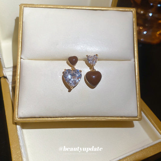A廠【HE28835】925銀針鋯石滴油愛心不對稱吊墜耳環時尚簡約百搭耳環輕奢高級感耳飾 25.10-1