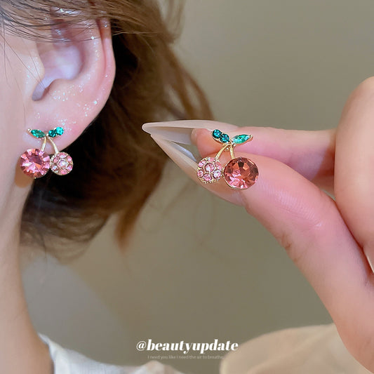 A廠【HE28832】925銀針鑲鑽櫻桃吊墜耳環時尚小清新甜美氣質耳環輕奢高級感耳飾 25.10-1
