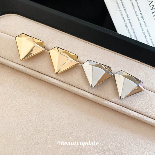 A廠【HE28830】925銀針歐美跨境鑽石形金屬耳環時尚簡約百搭耳環耳墜小眾設計感耳飾 25.10-1