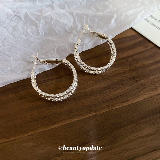 A廠【HE28775】925銀針褶皺雙層圓形吊墜耳圈時尚簡約冷淡風氣質耳環小眾設計感耳環 25.10-1